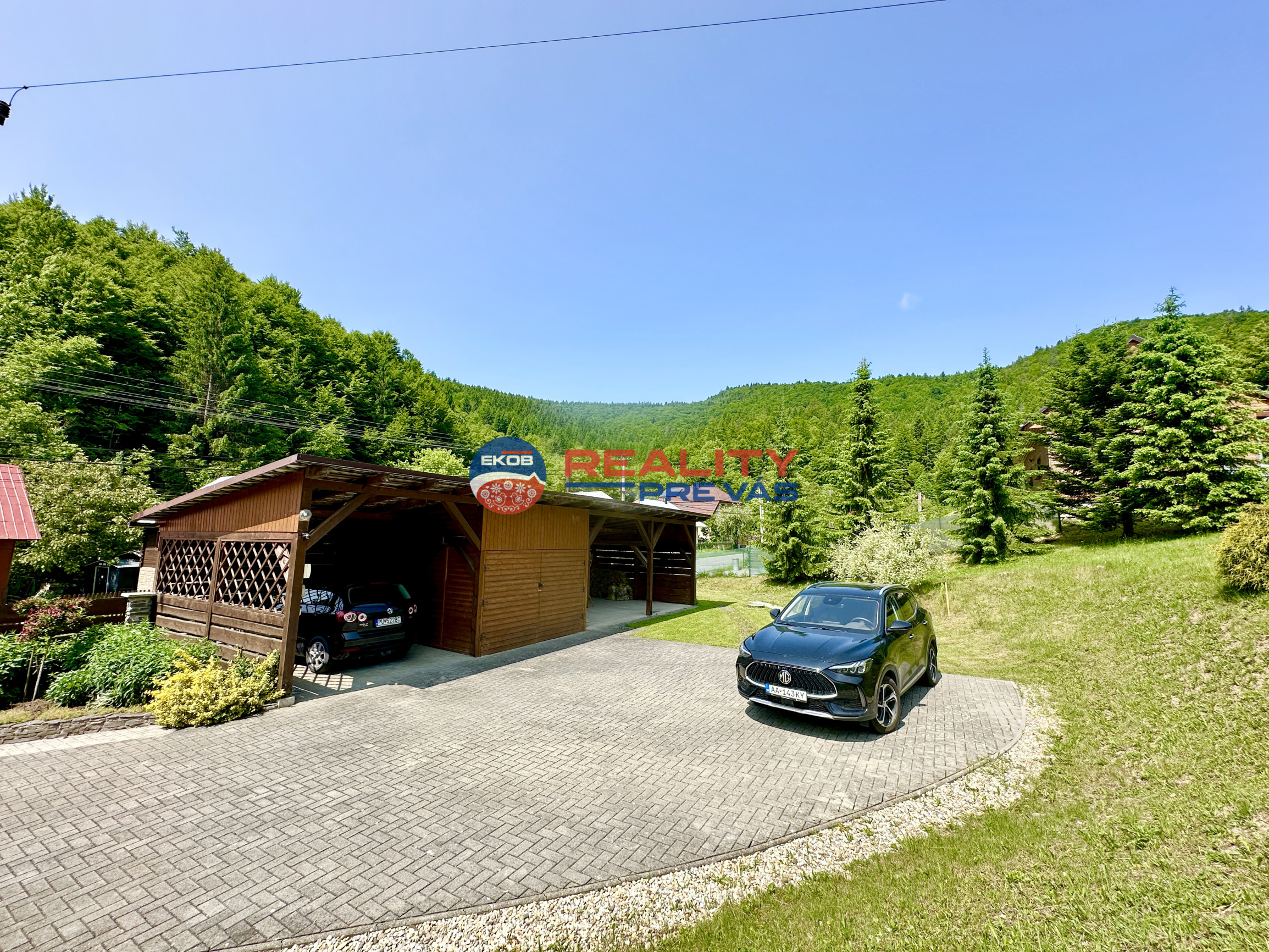 - veľký prístrešok pre autá a materiál s uzamykateľnou časťou o rozlohe ca 40 m2 Všetko prepojené nádhernými chodníkmi a cestami s prírodného kameňa Vlastná záhradka s nádherným trávnikom Sad plný stromov alebo kúsok lesa